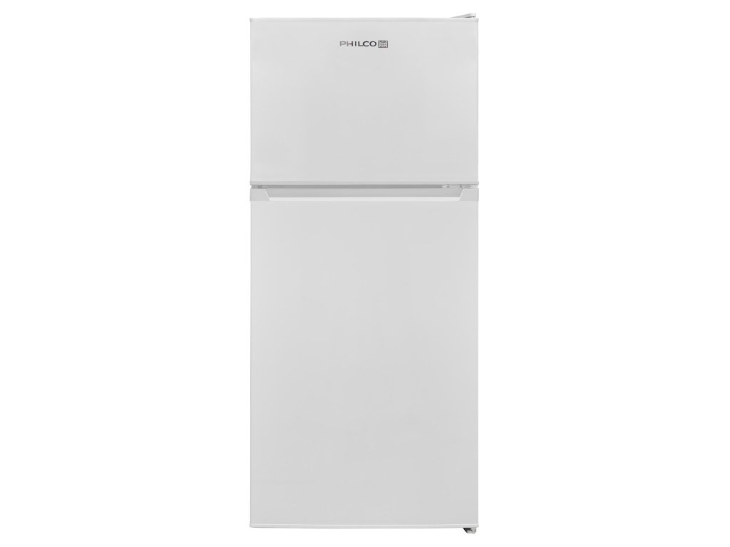 Dvoudveřová kombinovaná chladnička Philco PT 168 EMW1 s mrazničkou v horní části, v energetické třídě E a možností otočení směru otevírání dveří.